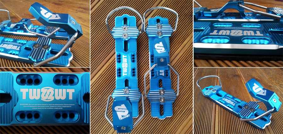 Крепления TWOOWT выполнены из высокопрочного сплава алюминия. Специально разработанные для скибордов с присоединением 4х4 дают дополнительную эластичность Вашим скибордам. Надежная фиксация ботинка обеспечит точный контроль скибордов на склоне, а также быстрое встегивание и выстегивание из креплений.